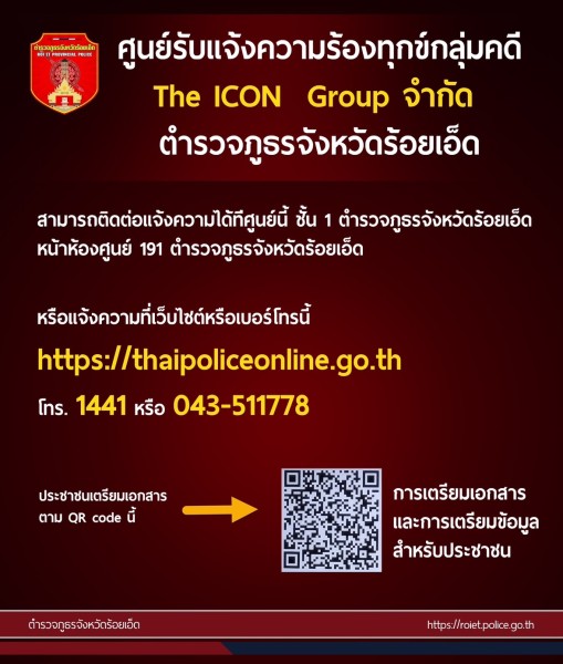 ศูนย์รับแจ้งความร้องทุกข์กลุ่มคดี The ICON Group จำกัด ตำรวจภูธ...