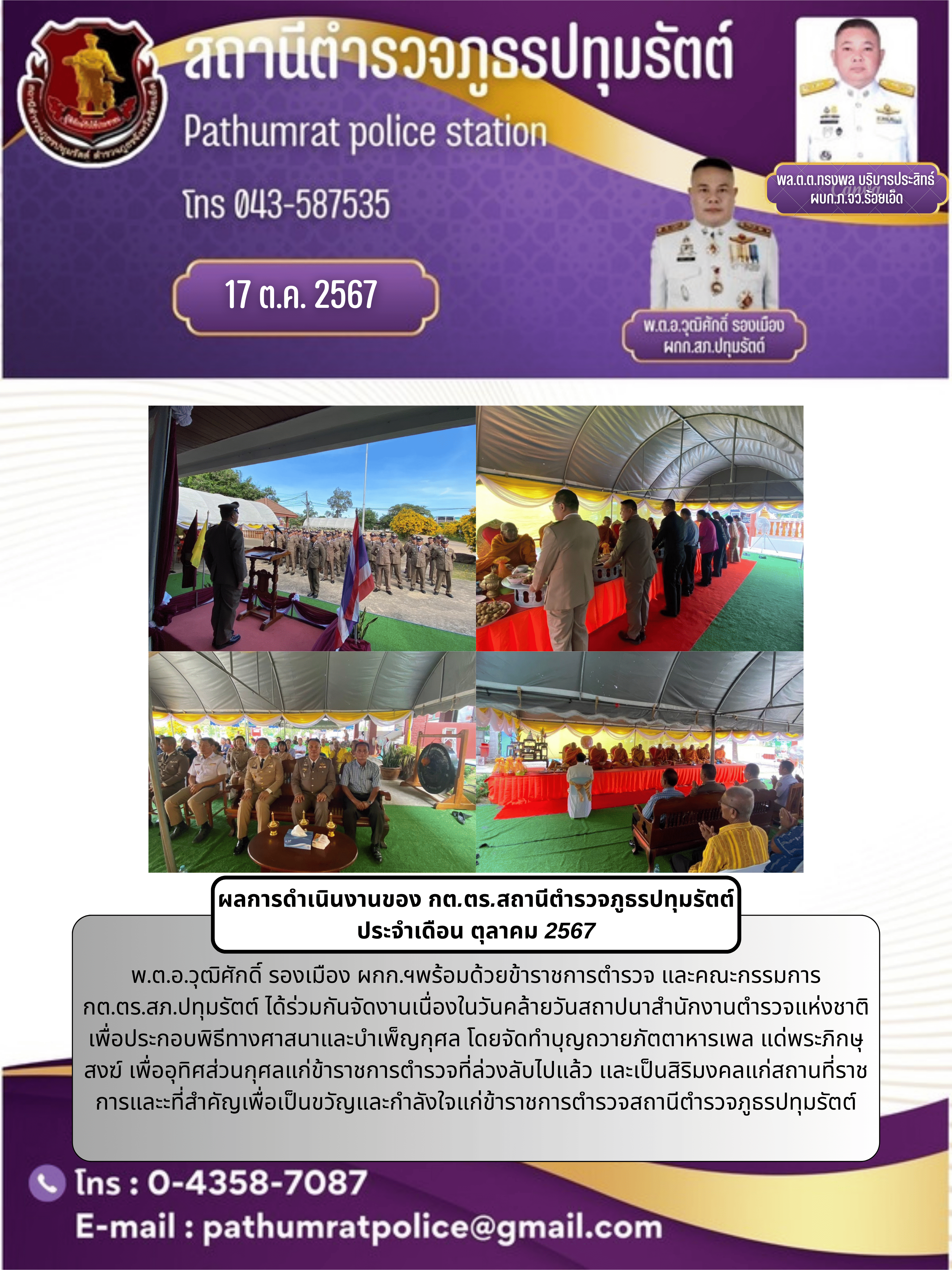 ผลการดำเนินงานของ กต.ตร. เดือน ตุลาคม 2567