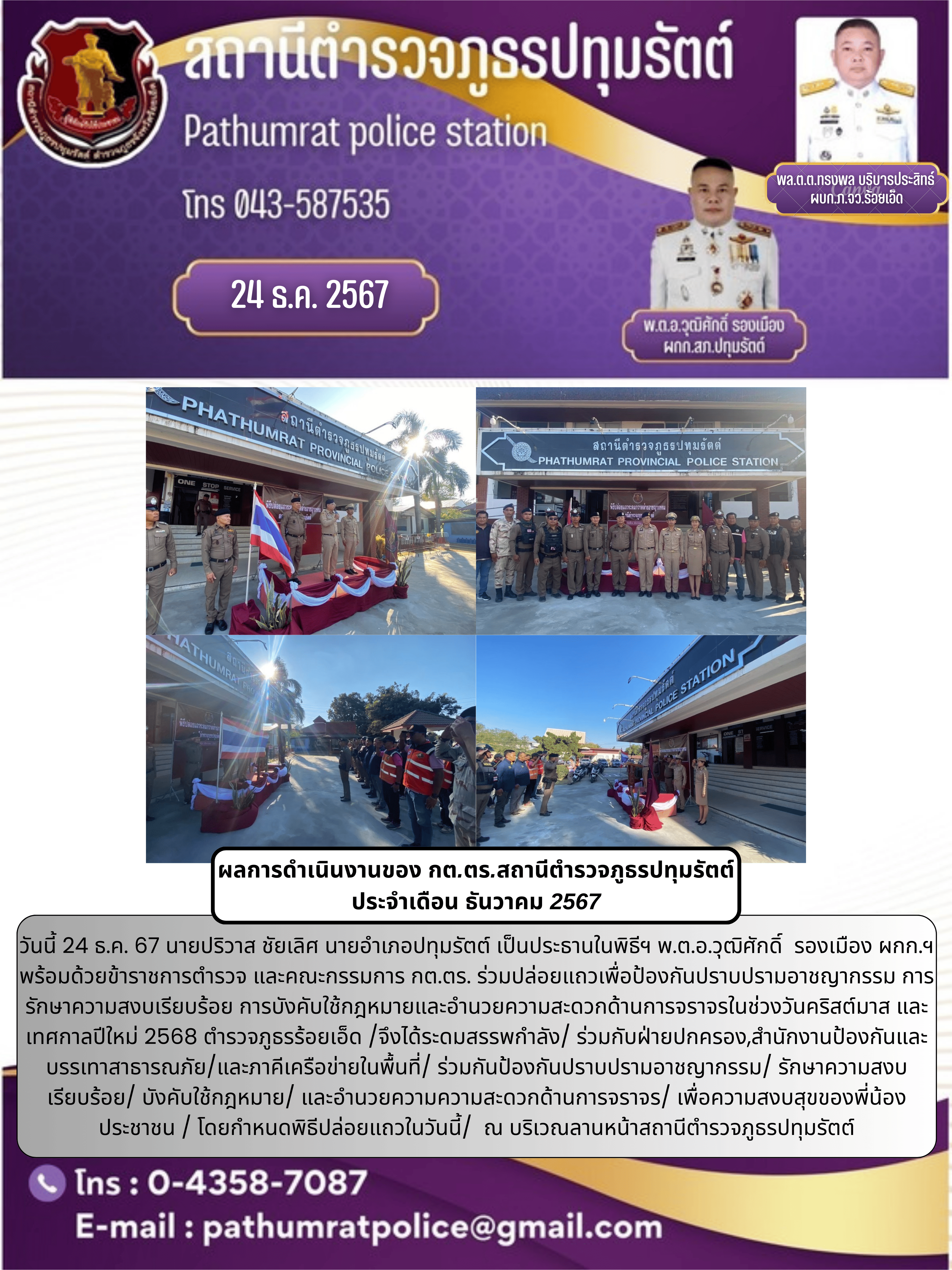 ผลการดำเนินงานของ กต.ตร. เดือน ธันวาคม 2567