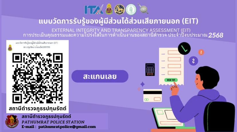 ประชาสัมพันธ์ข้อมูลการตอบแบบวัด EIT ของสภ.ปทุมรัตต์ ผ่าน Link หรือ QR Code ประจำปีงบประมาณ 2568