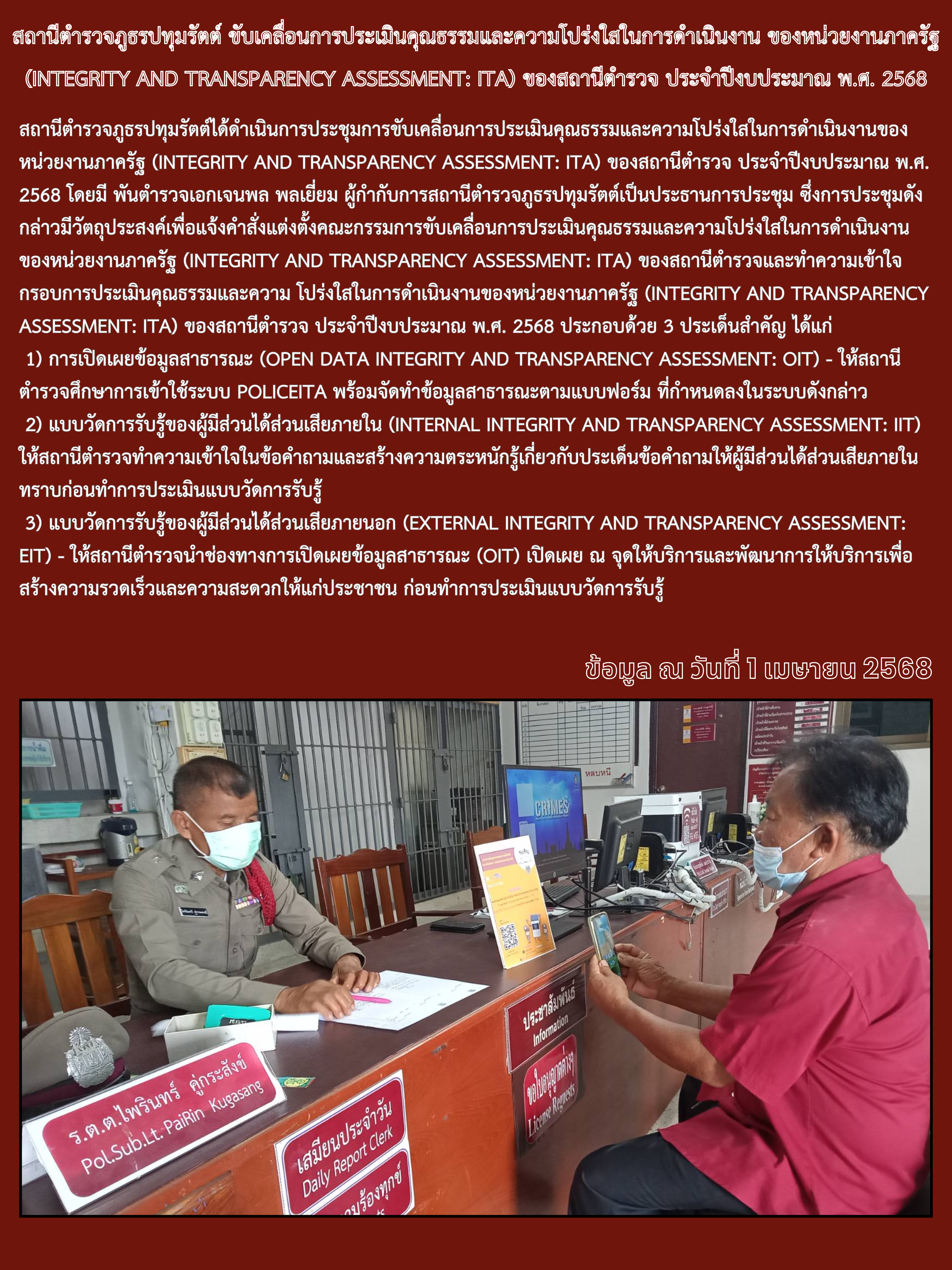 การประชาสัมพันธ์การประเมิน ITA 2568 สถานีตำรวจปทุมรัตต์